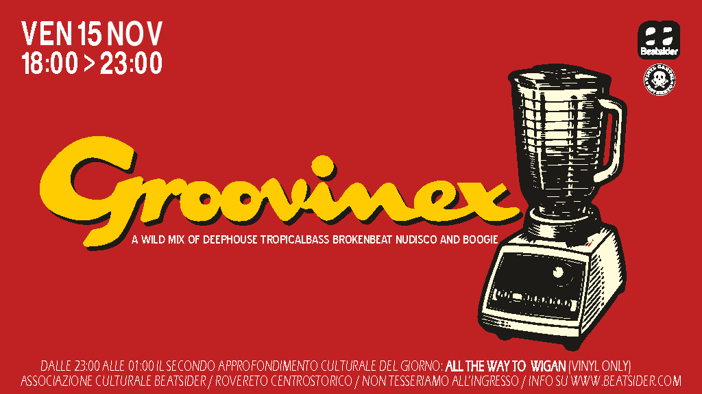 Da quasi un mesetto il venerdì e sabato apriamo prima, alle 18:00, e chiudiamo alle 01:00. In base ai feedback da gennaio valuteremo se estendere questo orario anche al mercoledì e giovedì, o se tornare allo status quo. Oggi doppio approfondimento culturale, dalle 18:00... GROOVINEX (partially mixed), poi dalle 23:00... del gran Northern Soul con […]