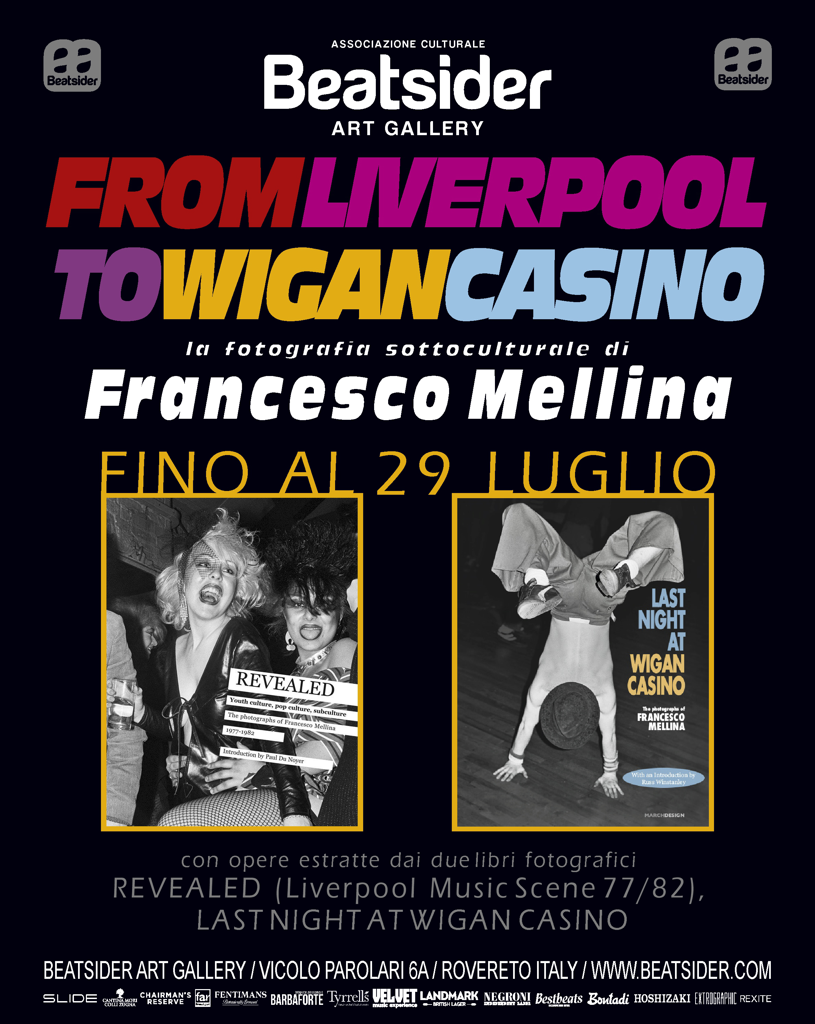Sabato 29 luglio la Beatsider Art Gallery farà calare gloriosamente il sipario sulla mostra fotografica FROM LIVERPOOL TO WIGAN CASINO di Francesco Mellina. Come a suo tempo annunciato, Francesco Mellina avrà in ogni caso una residency alla Beatsider Art Gallery, un corner a lui dedicato, dove scoprire e approfondire la sua arte non ancora pubblicata.