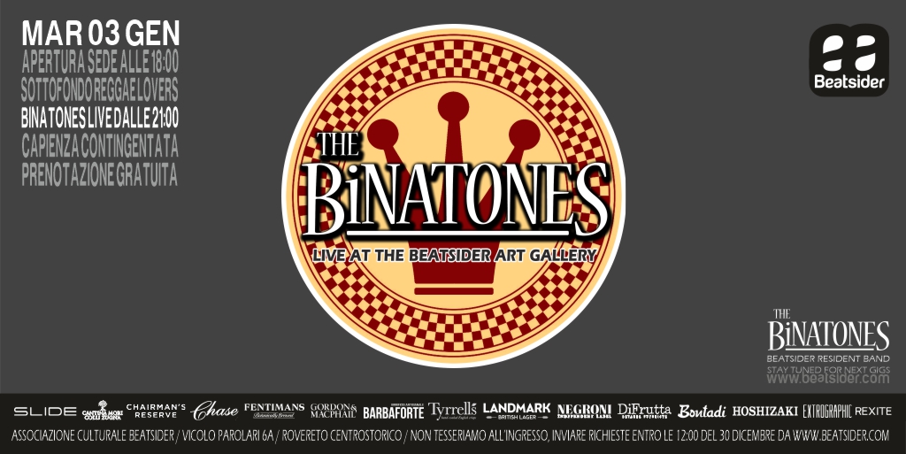 A partire dal 2023 la Beatsider offrirà infatti alla curiosità musicale dei propri gentili associati anche dei live, ma anziché affidarci a rotazioni all-inclusive avremo due band resident (composte interamente da nostri gentili associati), e la prima che andremo a presentare il 3 gennaio sarà…. The Binatones!