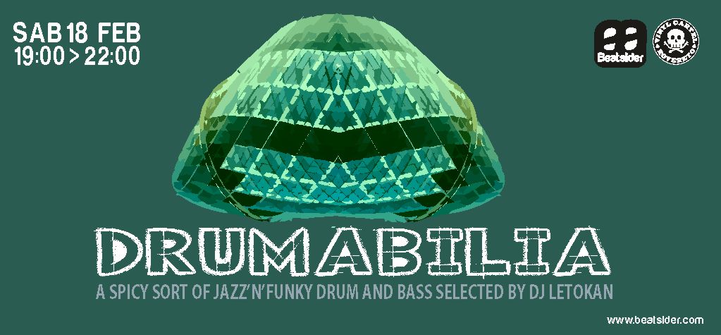 DRUMABILIA grazie alla selezione musicale (solo vinile) e l’ambientazione sistemica curate da Dj Letokan propone un mood che invita a esplorare il versante più squisitamente jazzy e fluid della galassia drum and bass. Roba raffinata.