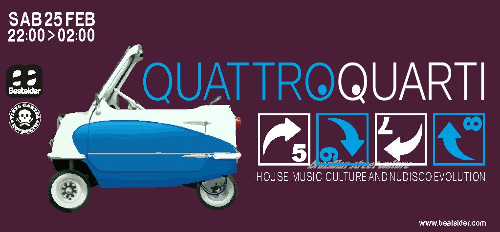 QUATTROQUARTI offre l’occasione per dipanare percorsi di ascolto che fluiranno bidirezionalmente fra il mondo della house music culture e il nuovo panorama che sotto il grande ombrellone della Nudisco continua a custodire rispettosamente l’eredita dei pionieri declinandola con un touch funkyhouse da nuovo millennio.