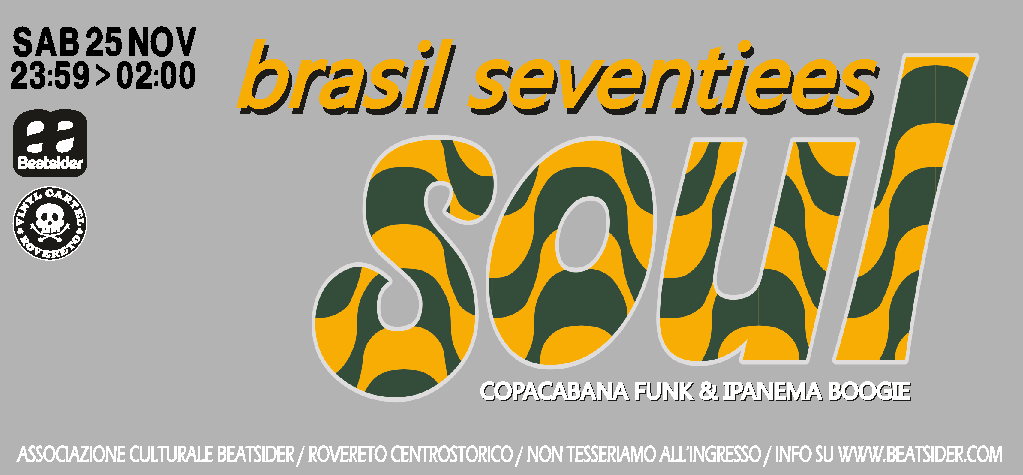 BRASIL SEVENTIEES SOUL è il nostro approfondimento culturale dedicato agli intrecci maturati nella seconda metà degli anni sessanta e per tutti gli anni settanta fra soul music (anche disco) e musica brasiliana, culminati poi negli anni ottanta con l’esplosione del funkeggiante brazilian boogie.