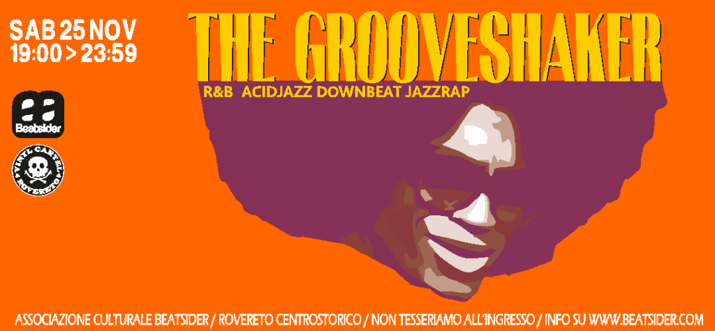 THE GROOVESHAKER con una selezione di vinili interplanetaria va a proporre una commistione di elegantissimo rnb, stiloso jazzrap, acidjazz di frontiera e downbeat senza ritegno.