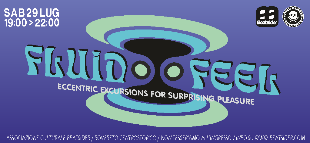 FLUID FEEL si differenzia dalla quasi totalità dei nostri approfondimenti culturali dal momento che la selezione musicale sarà affidata di volta in volta a un diverso deejay/selector, il quale potrà poi a sua volta variare mood all’interno della stessa serata, attingendo liberamente e leggiadramente dal vastissimo range di generi musicali proposti abitualmente in Beatsider, con qualche sorpresa qua e là sempre in agguato. Capiterà così di avventurarsi in safari afrobeat, di avvertire sentori arabeggianti, di trovarsi coinvolti in vorticose missioni in giro per il mondo, di scoprire stravaganti ribaltamenti stilistici di brani celebri, di imbattersi in misconosciute branchie laterali dell’elettronica vecchia e nuova, con improvvisi knock out funk e amorevoli cure discosoul. Molti viaggi all’interno di una proposta dinamica ed eclettica, all’insegna dell’imprevedibilità e del vinile, sempre giusto.