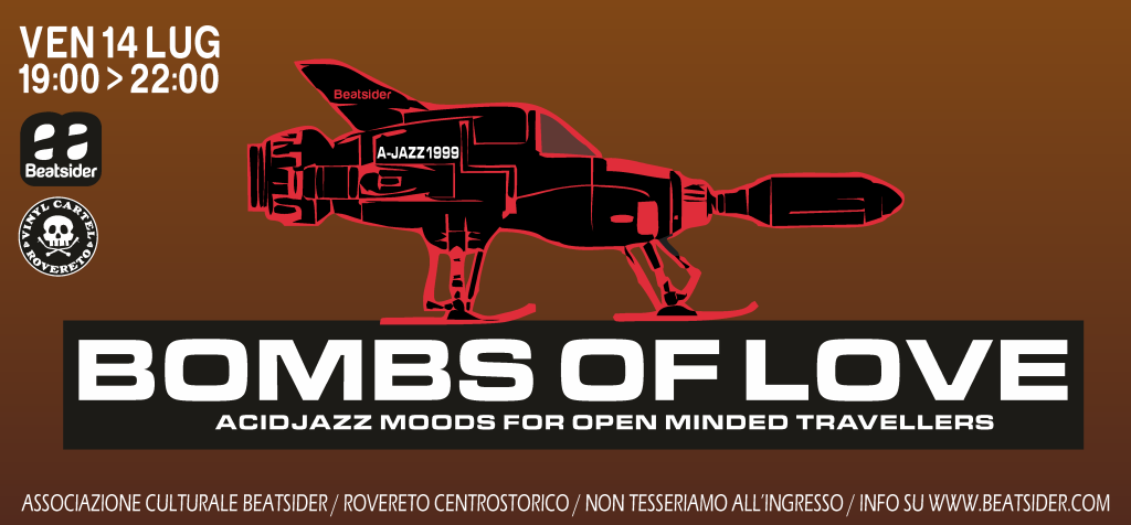 BOMBS OF LOVE propone le atmosfere londinesi degli anni d’oro dell’acidjazz ma, rispetto ad altri tipi di approfondimento culturale proposti da Beatsider e molto più facilmente circoscrivibili, BOMBS OF LOVE ripropone al meglio e con briglia molto sciolta l’attitudine superfree che ha dato vita e sviluppato negli anni il concetto di acidjazz, ovvero una commistione totale di influenze e sottogeneri riconducibili ai generi base su cui è idealmente fondato il movimento acidjazz, ovvero: jazz, soul, funk, latin, bossa, rnb.